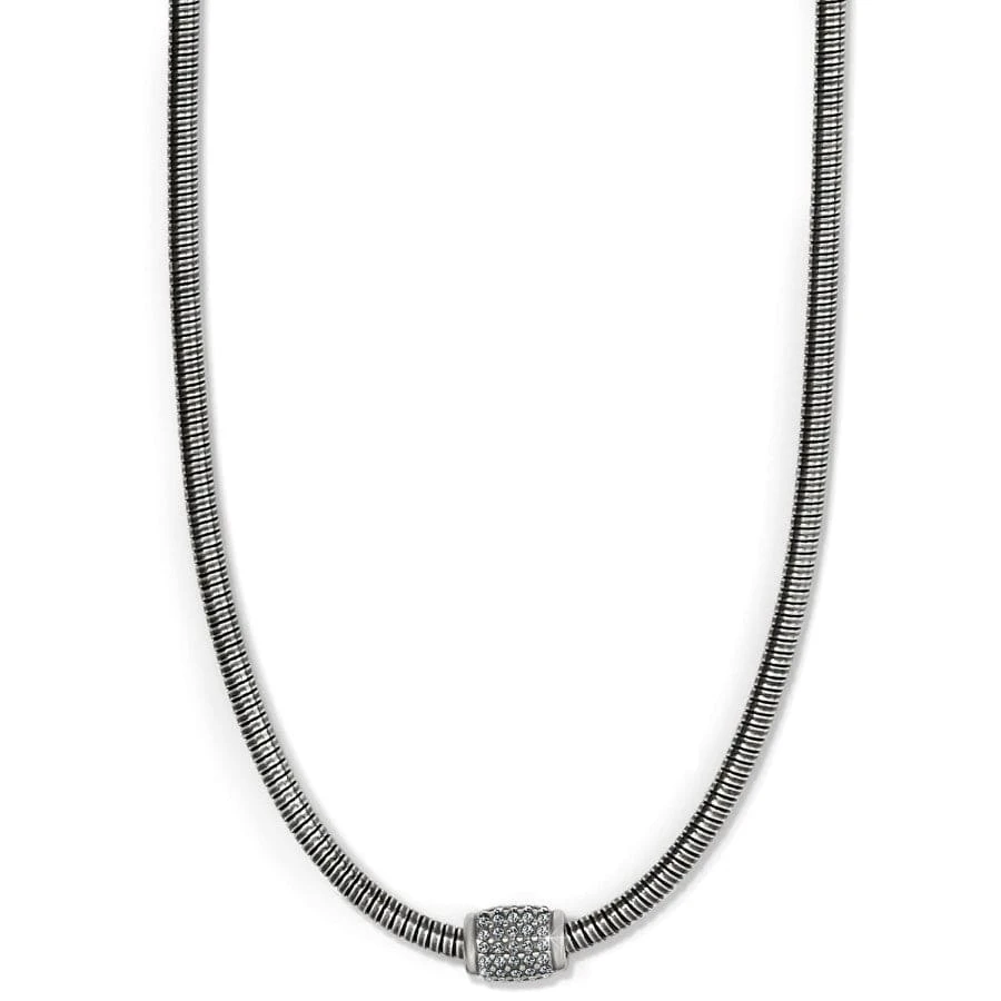 This fantastic collar necklace has a moving pave barrel that adds a touch of playfulness to the elegant look.